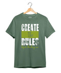 "Create The Rules" Printed T-Shirt – Premium Round Neck - Basil Green - 100% Cotton