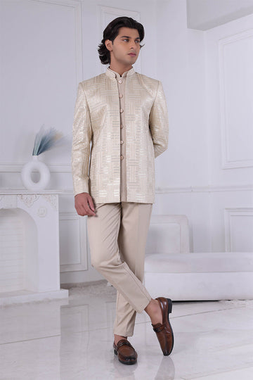 Cream Malai silk Embroidered Men's Indo Western