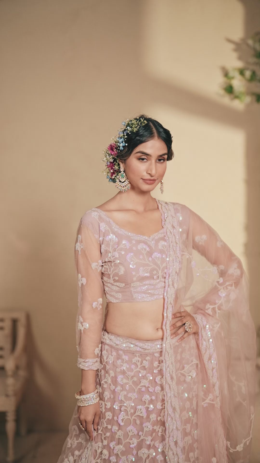 Step into elegance with this stunning Pink Lehenga Choli featuring intricate thread work and vibrant thread embroidery. Crafted from premium-quality Net with a graceful fall, this semi-stitched lehenga is adorned with delicate floral detailing and paired with a contrast Turquoise Blue dupatta—adding a soft, feminine flair to the bold ensemble.
