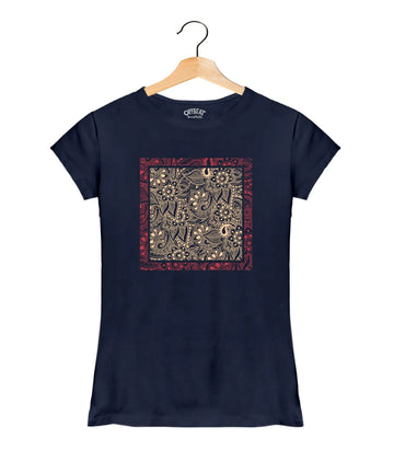 Flowers And Leaves Art - Women’s T-Shirt – Premium Round Neck - Navy Blue - 100% Cotton