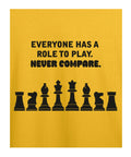 "Never Compare" Printed T-Shirt – Premium Round Neck - Black and Sunflower Yellow - 100% Cotton
