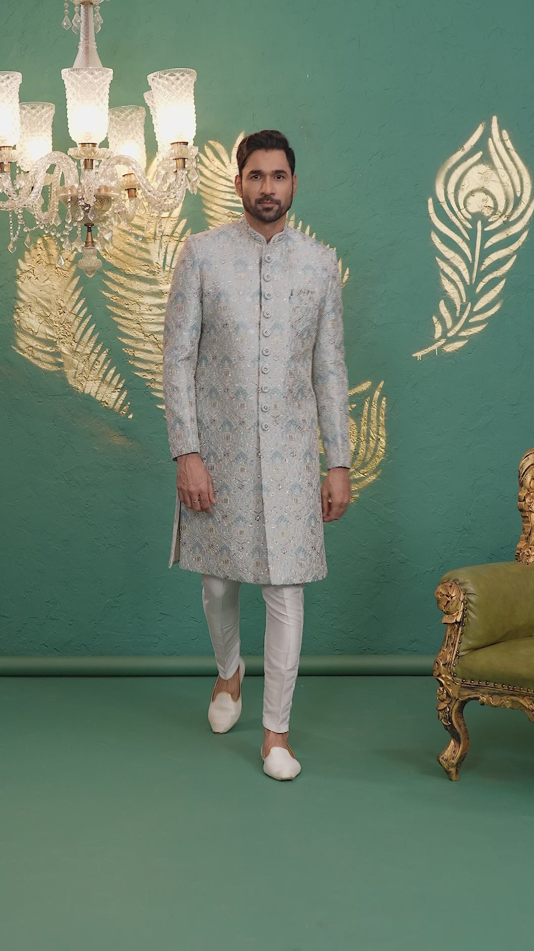 Whether you’re the groom, best man, or guest, this sherwani ensures you’ll stand out in any crowd with regal grace.