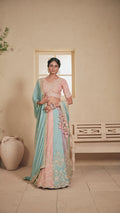 Mirror Embroidered Lehenga with Blush Multi Colour Dupatta