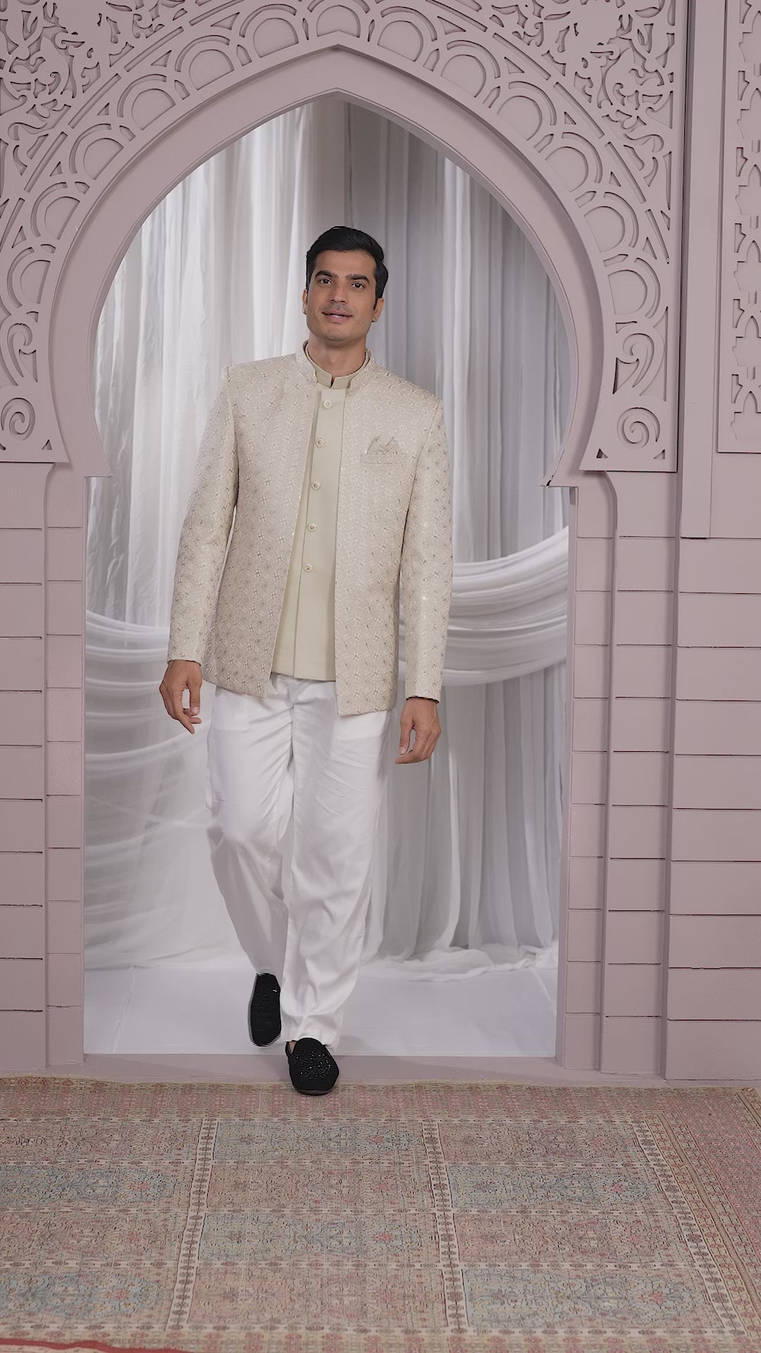 Modern Jodhpuri Suit-Party-Ready in Pastel Beige