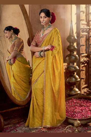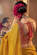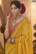 Mustard Handwoven Banarasi Saree with Red Embroidered Blouse