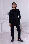 Navy Blue Jacquard Indo-Western Sherwani Jacket Set