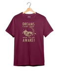 "Dream Come True" Printed T-Shirt – Premium Round Neck - Electric Blue and Maroon - 100% Cotton