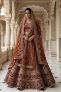 Royal Orange Embroidered Bridal Lehenga Set for Wedding