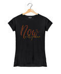 "Now" - Women’s T-Shirt – Premium Round Neck - Black - 100% Cotton