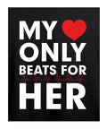 "My Heart Only Beats For Her" Printed T-Shirt – Premium Round Neck - Black - 100% Cotton
